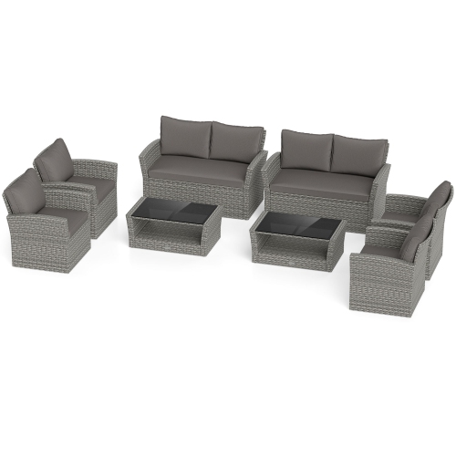 Gymax Set Of 8 Patio Furniture Set w/ 4 Rattan Chairs Loveseat Coffee Table Cushions