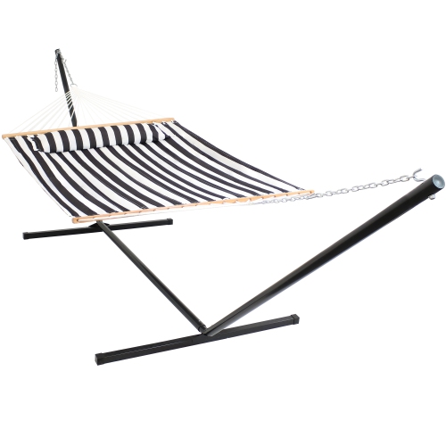 Hamac matelassé en tissu pour 2 personnes avec support de 15 pi de Sunnydaze - Noir/blanc