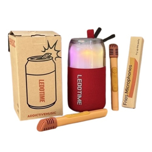 Machine à karaoké portative avec deux microphones, Bluetooth, éclairage RVB