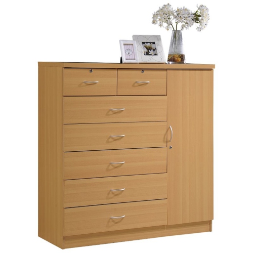 Hodedah – Commode à 7 tiroirs avec verrous sur 2 tiroirs et 1 porte en bois de hêtre