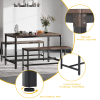 Ensemble de table à dîner HOMOOI pour 4, table et banc en bois exclusifs à pattes en coin courbées avec décoration en coin en métal rivetée et repose-pieds ergonomiques pour salle à manger, cuisine, dessus en bois cannelé, 3 pièces, 47.2 po