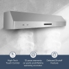 Une hotte de dessous d'armoire qui est non seulement belle, mais aussi dotée d'un puissant ventilateur de 850 pi3/min. Il comprend des filtres déflecteurs pratiques en acier inoxydable qui améliorent la circulation d'air et qui vont au lave-vaisselle. Offert avec une commande tactile en verre à 3 vitesses, un éclairage DEL à deux niveaux et une fonction d'arrêt différé.