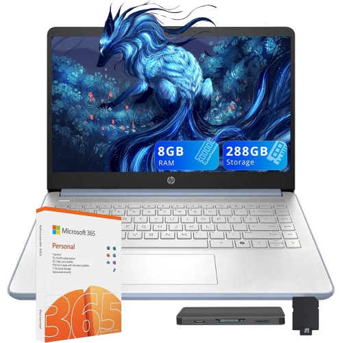 HP 14" HD Anti-Glare Laptop, Intel Processor N150, 288GB Storage(128GB UFS+160GB Docking Station Set), 8GB RAM, Intel Graphics, 1 Year Office 365, Fast Charge, Win 11 S, Blue
