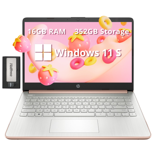 HP Premium Stream 14" HD BrightView Laptop, Intel Celeron N4120, 352GB Storage(64GB eMMC+288GB Docking Station Set), 16GB RAM, Intel UHD Graphics, 1 Year Office 365, Win 11s, Gold