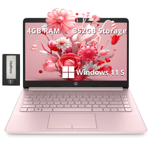 HP Premium Stream 14" HD BrightView Laptop, Intel Celeron N4120, 352GB Storage(64GB eMMC+288GB Docking Station Set), 4GB RAM, Intel UHD Graphics, 1 Year Office 365, Win 11s, Pink