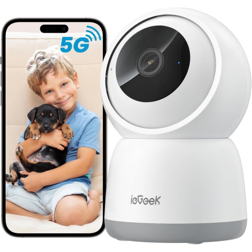 ieGeek 2K Indoor Security Camera, 5G/2.4G WiFi Pet Cameras for Home Security, 360° Dog Cam w/Auto Tracking, Smart Motion Detection, Phone App, Baby Monitor, 3MP Night Vision,White