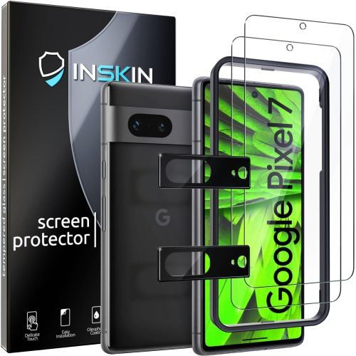 Inskin Screen Protector for Google Pixel 7 6.3 inch - 2+2 Tempered Glass for Screen & Camera Lens, Auto-Align Installation, Fingerprint ID Support, Plasma Coating, Fits Cases