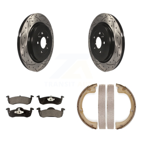 Jeu de patins de frein de stationnement à disque perforé et rainuré arrière pour Lincoln MKT KDT-101506