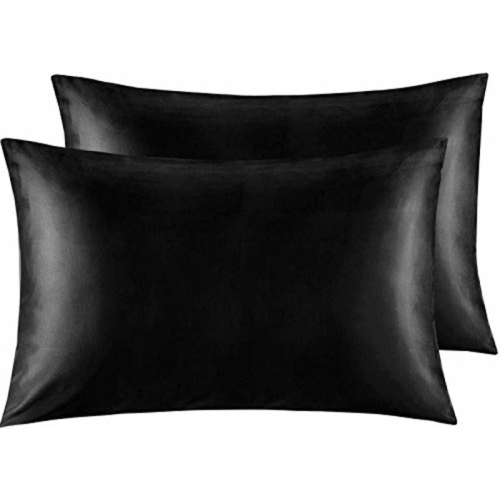 Jinamart Silky Satin Tickowcase - Cas d'oreiller en satin ultra-doux pour cheveux et peau | Boîtier hypoallergénique avec fermeture à glissière cachée (Black, King Deux Pack)
