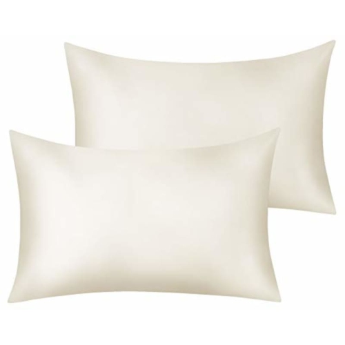 Jinamart Silky Satin Tickowcase - Cas d'oreiller en satin ultra-doux pour cheveux et peau | Étui d'oreillers hypoallergéniques avec fermeture à glissière cachée (blanc ivoire, king deux pack)