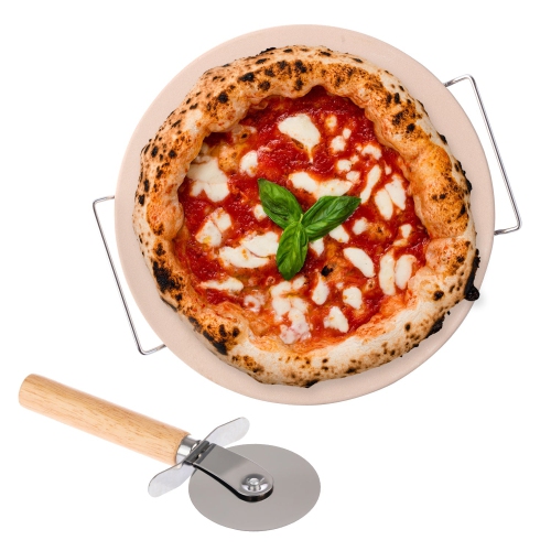 JS Gourmet – Ensemble de pierres à pizza avec roue et support, diamètre de 15 po