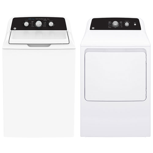 Laveuse à chargement par le haut de 4,4 pi³ et sécheuse électrique de 6,2 pi³ de GE - Blanc