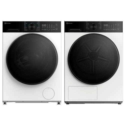 Laveuse à vapeur à chargement frontal 3,1 pi³ et sécheuse électrique compacte avec pompe à chaleur 4,4 pi³ d'Electrolux - Blanc