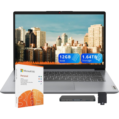 Lenovo IdeaPad 1 14" HD Laptop, Intel Celeron N4500, 1.64TB Storage (128GB eMMC+512GB SSD+1TB Docking), 12GB RAM, Intel UHD Graphics, 1 Year Office 365, Win 11Pro, Grey