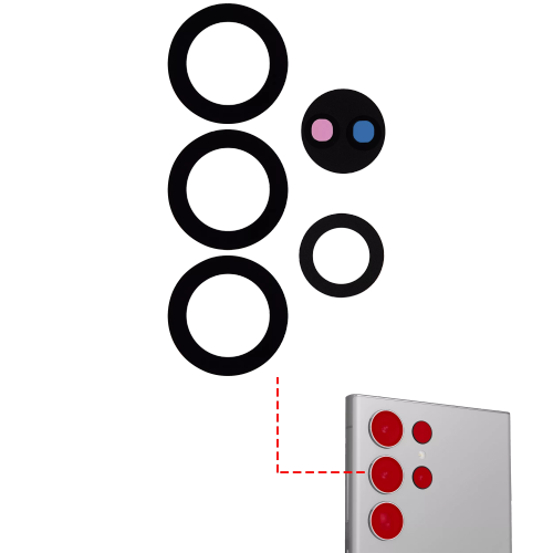 Lentille de caméra arrière de remplacement de qualité supérieure pour Galaxy S23 Ultra 5G de Samsung - Paquet de 10 avec adhésif (noir)