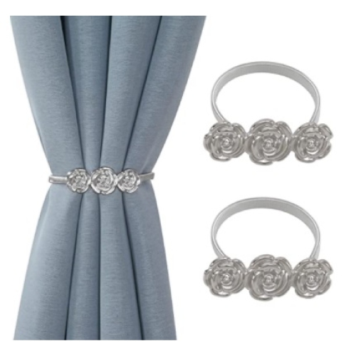 Maison Concepts Set De 2 Rideaux Tiebacks Roses Silver