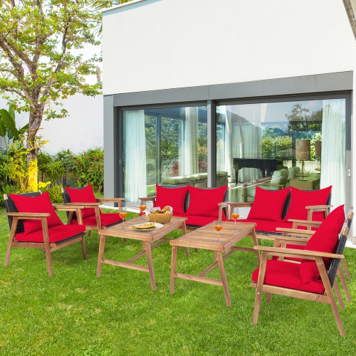 Marque Gymax Ensemble de salon de patio 8 pièces Ensemble de meubles à ossature de bois avec coussins