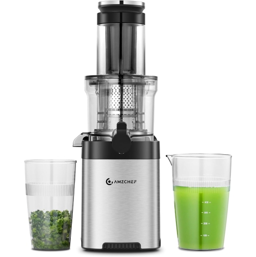 Masticating Juicer, Slow juicer with 4.6 inch Feed Chute for Whole Fruits &Vegetables, Non-Clogging Slow Cold Press Juicer with Double Strainers, Powerful 200W Motor