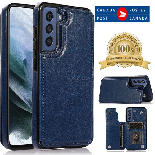 Merlin Étui portefeuille en cuir PU avec avec Cartes Poches Arrière Coque pour Samsung Galaxy S21FE (Bleu)