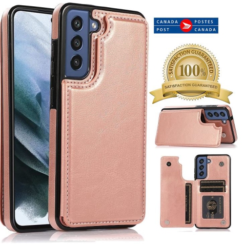 Merlin Étui portefeuille en cuir PU avec avec Cartes Poches Arrière Coque pour Samsung Galaxy S21FE (Or Rose)
