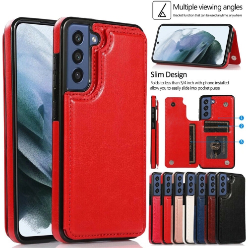 Merlin Étui portefeuille en cuir PU avec avec Cartes Poches Arrière Coque pour Samsung Galaxy S21FE (Rouge)