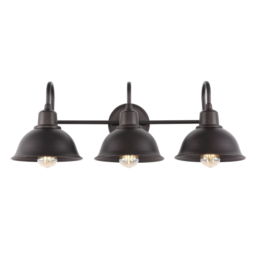 Les lignes traditionnelles de cette lampe murale lui donnent une allure classique. Un fini bronze doux et un abat-jour en métal ajoutent un style rétro discret à un miroir de salle de bain ou à un évier de cuisine.