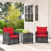 Meubles de patio en rotin 5 pièces avec 2 poufs et table basse en verre trempé de Costway - Noir/Gris/Bleu marine