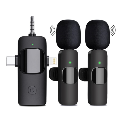 Micro-cravate sans fil K15, double micro 3-en-1 avec réduction du bruit pour l'enregistrement vidéo sur téléphone mobile