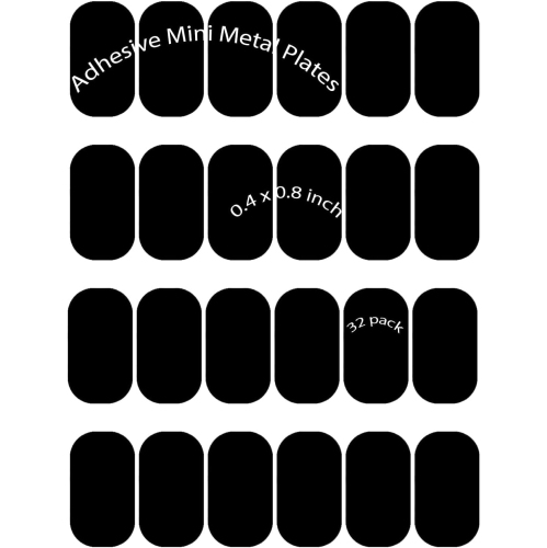 Mini Metal Plates for Magnetic Mount, Wall, Phone Holder, Case, Magnet, Crafts, DIY. Kit of 32 Black Small 0.4 x 0.8 Iron Discs with 3M Adhesive Backing. Steel Replacement Sticker