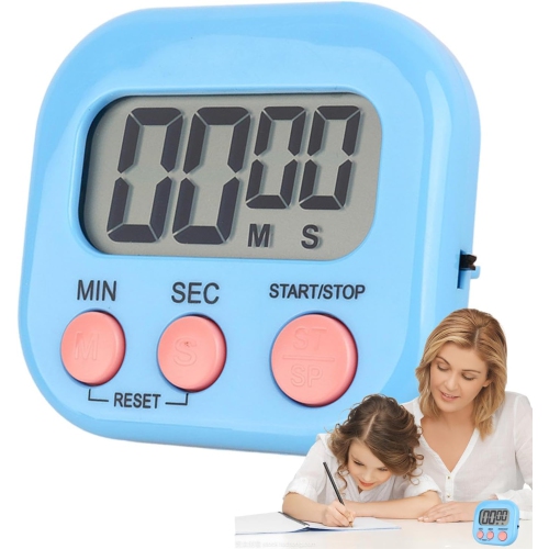 Minuterie pour enfants, minuterie numérique de cuisine, arrière magnétique, cloche, grille de cuisson - bleu
