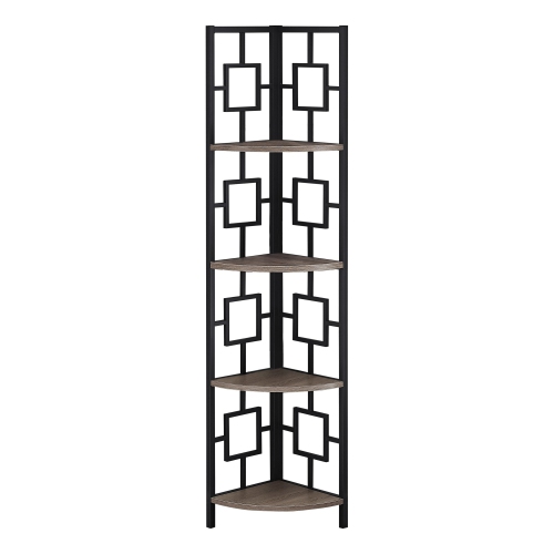 Monarch Specialties I 3611 - Etagere 62''h / Taupe Fonce / Metal Noir En Coin