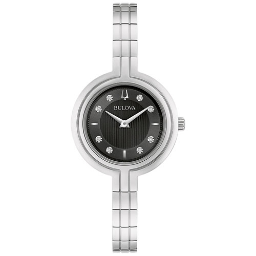 Montre à quartz pour femmes Rhapsody 30 mm avec boîtier et bracelet en acier inoxydable argenté et cadran noir de Bulova (96P215)