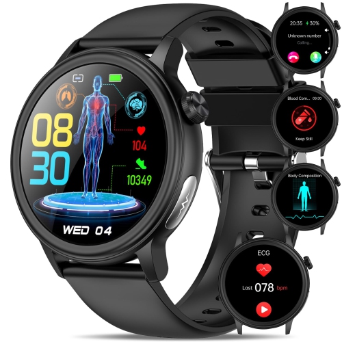 Montre intelligente AMOLED Bluetooth Appels ECG Mesure de la santé Hommes Femmes Lampe de poche Montre intelligente Moniteur d'activité sport (silicone noir)