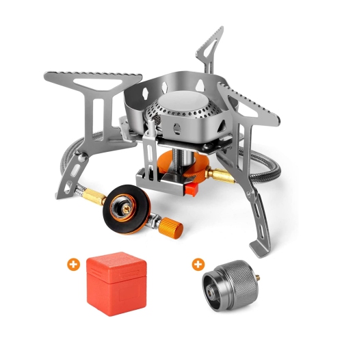 NIERBO 3500W Réchaud de camping coupe-vent Réchaud à gaz de camping avec adaptateur de bidon de carburant, allumage piezo, étui de transport, brûleur de réchaud pliable portable pour randonnée