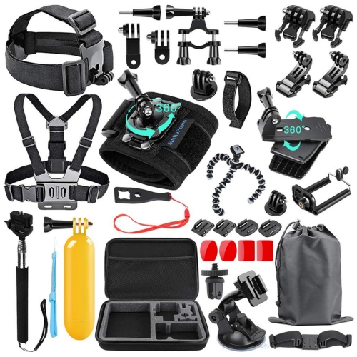 NIERBO 48-in-1 Accessories Kit for GoPro Hero 10 9 8 Max 7 6 5 4 3 3+ 2 1 Black GoPro 2018 Session Fusion Silver White Insta360 DJI AKASO Action Camera (Carrying Case)