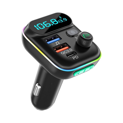 Émetteur FM Bluetooth T70 de NIERBOPuce haute performance, sécurité multiple.PD Type C 18W + QC 3.0 18W (2 USB + 1 Type C)Interface USB à double port de charge simultanée, haute puissance / sûre et efficace, protection de sécurité professionnelle.Microphone de haute qualitéMeilleure qualité des appels mains libres, plus claire et plus fluide. La réduction automatique du bruit embellit le son et la qualité sonore est claire.