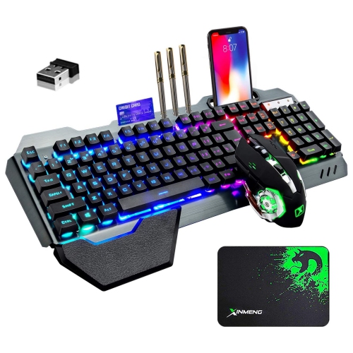 NIERBO Wireless Gaming Keyboard and Mouse with Backlit Rechargeable 4800mAh Battery Metal Panel Mechanical Ergonomic Feel Waterproof Dustproof 7 Color Mute Mice(Black RGB)