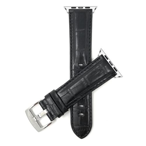 Noir, Extra Long (XL) Bracelet de montre 42mm / 44mm pour Apple Watch pour hommes en cuir véritable, fini lustré, motif alligator, pour Série 6 5 4 3 2 1
