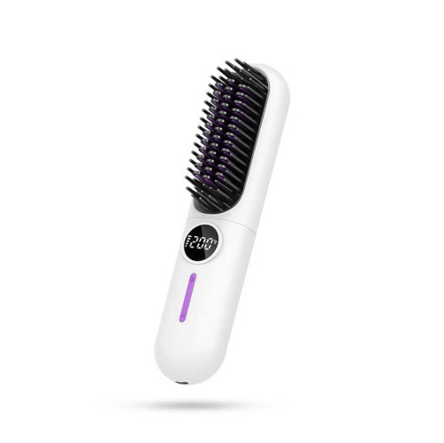 Nouveau peigne électrique chauffant en céramique sans fil LCD de Lazy, port USB, fer plat électronique à 7 vitesses, réglage de la température (blanc)