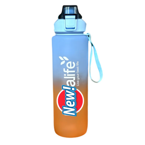 Nouvelle bouteille d'eau Life Sports d'extérieur, avec marque à l'échelle, avec paille, bouteille à l'épreuve des fuites, plastique, 1000 ml bleu orange