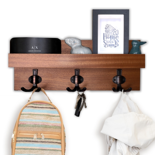 Organisateur d'entrée en acajou de 18 po Straga avec 3 crochets et tablette – Fixation murale pour manteaux, clés, sacs – vestiaire, couloir – Fabriqué au Canada 10