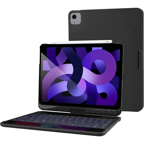 P Keyboard Case for iPad Air 5th 2022/ Air 4th Gen 10.9 2020/ iPad Pro 11 2022 2021 2020 2018, Wireless Keyboard with 7 Colors Backlit, 360 Degree Rotation Protective Cover, Auto