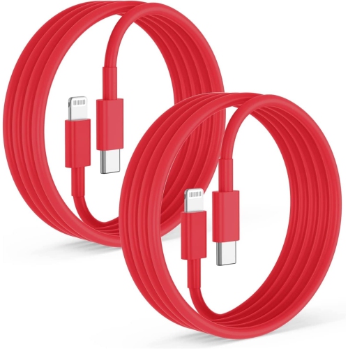 Paquet de 2 câbles USB-C à Lightning rouges pour chargeur iPhone 14 13Fast d'Apple; Cordon de 6 pi [certifié MFi d'Apple]; Câble USB-C à Lightning de 6ft m pour Apple iPhone14 13 12 11 Pro Max/Mini