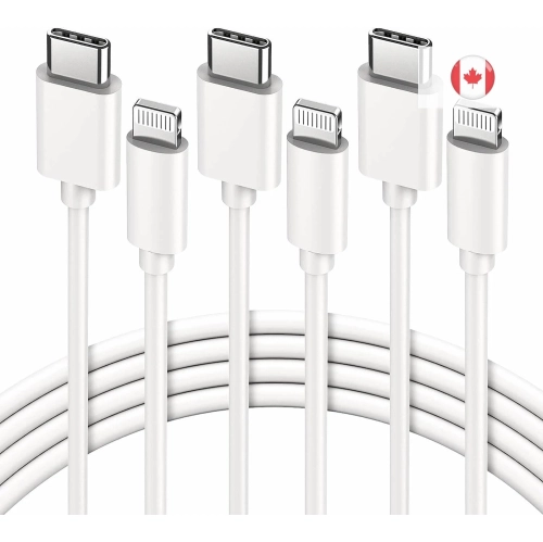 Paquet de 3 câbles de chargement rapide iPhone 12 13 câble de chargement USB-C à Lightning - port de type C compatible avec iPhone 13 12 mini Pro Max 11 S.