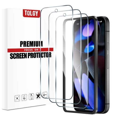 Paquet de 3 protecteurs d'écran pour Pixel 9 de Google, film en verre trempé avec cadre d'installation facile, compatible avec le déverrouillage des empreintes digitales, HD Clear, dureté 9H
