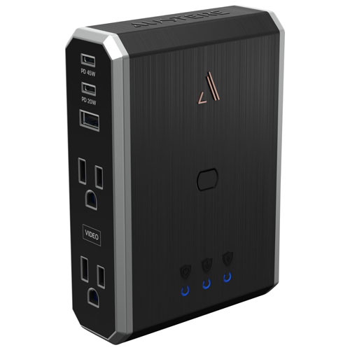 Protégez vos appareils de cinéma maison contre les surtensions et les variations de courant brusques avec le parasurtenseur à quatre prises USB Omniport VIII d'Austere. Doté de la technologie de protection Joules, cet appareil peut efficacement résister à plusieurs petites pointes de courant pour offrir une protection durable. Le voyant à DEL bleu vous permet de savoir quand le Joules est vide et qu'il doit être remplacé.