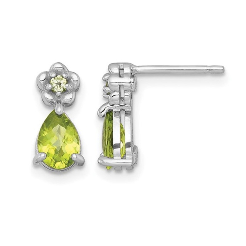 Ces pendants d'oreilles ornés d'un péridot vert sont ornés de la pierre de naissance du mois d'août et d'un poids total de 1,37 ct de magnifiques pierres vertes. Chaque boucle d'oreille est dotée d'un péridot en forme de poire et d'un minuscule rond au-dessus. En argent sterling plaqué rhodium, ces boucles d'oreilles mesurent 1 2 po de longueur et 1 5 po de largeur.