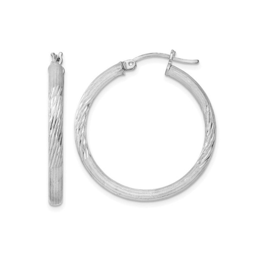 Petites créoles en argent sterling de 1 po à taille diamant et en satin (3,0 mm)