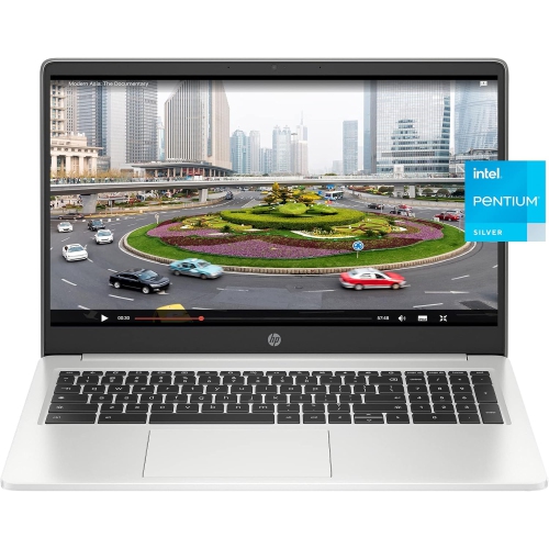 Portable Chromebook 15 6 po FHD de HP (Celeron N6000 d'Intel, mémoire vive 8 Go, eMMC d'128 Go, ChromeOS, bi Kb) - Argenté minéral (15a-na0020ca) - Remis à neuf (bon état)
