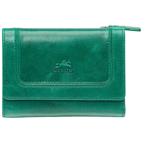 Portefeuille RFID à trois volets en cuir véritable de taille moyenne South Beach de Mancini - Vert